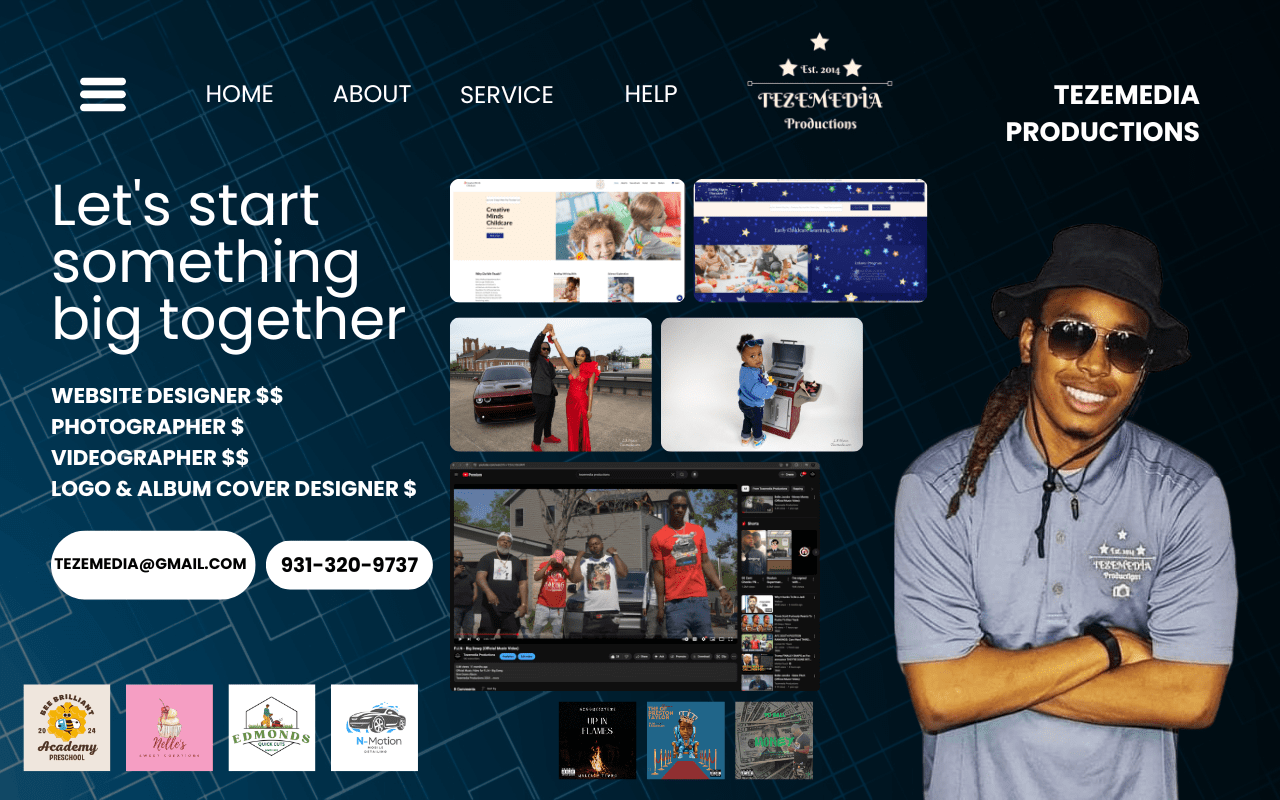 June 22, 2025June 22, 2025 TezeMedia Services Welcome to TezeMedia here are our services!!! Website Designer Photographer Videographer Logo & Album Cover Designer Share this: Share on X (Opens in new window) X Share on Facebook (Opens in new window) Facebook Like Loading... Related